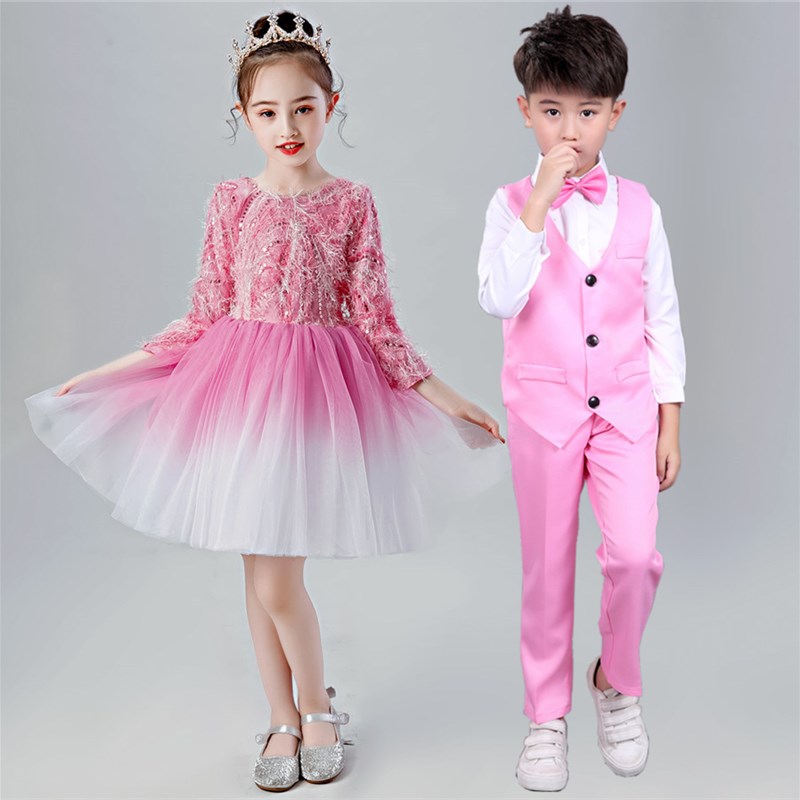 元旦儿童长袖演出服中小学生合唱团女童蓬蓬纱裙幼儿园舞蹈表演服