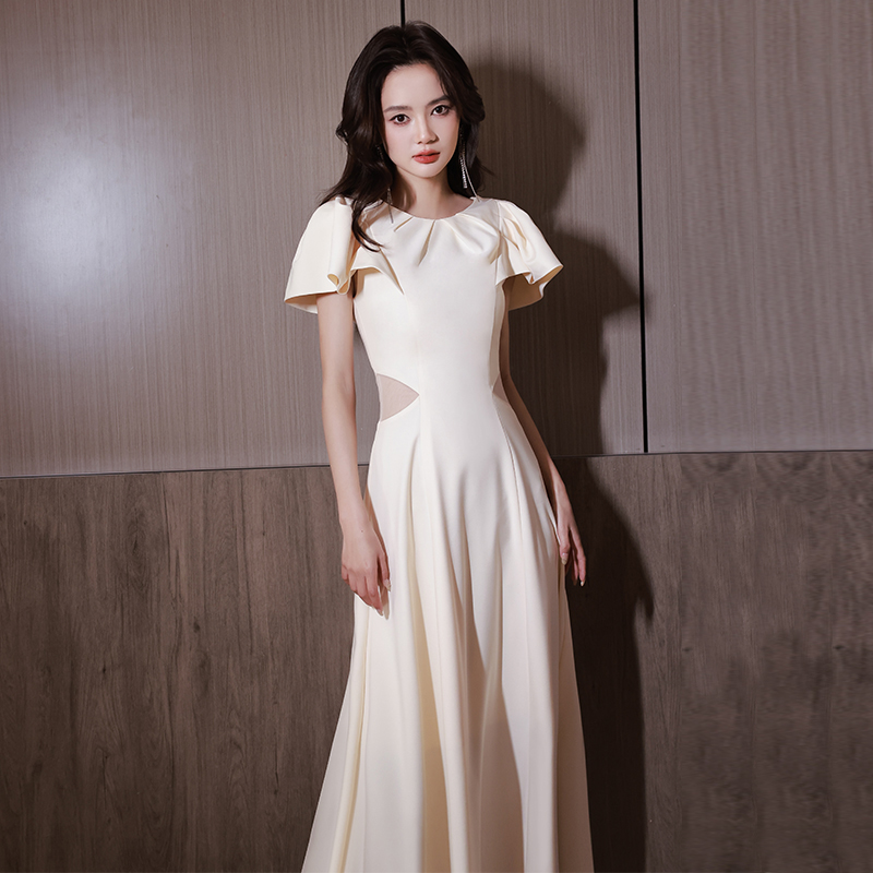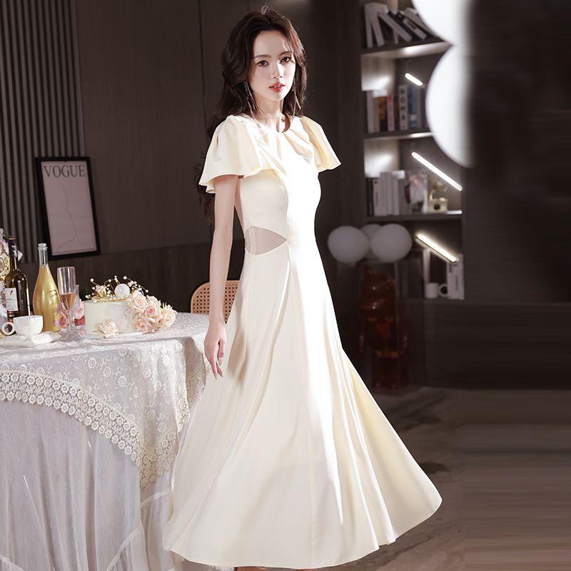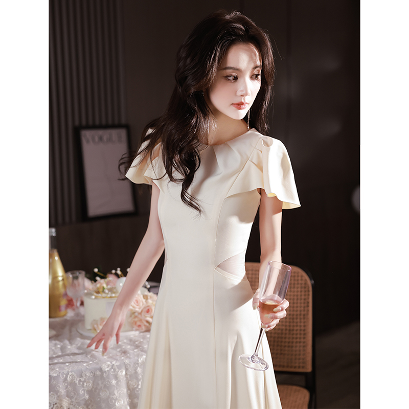阿莲莉赫本风中长款香槟晚礼服女