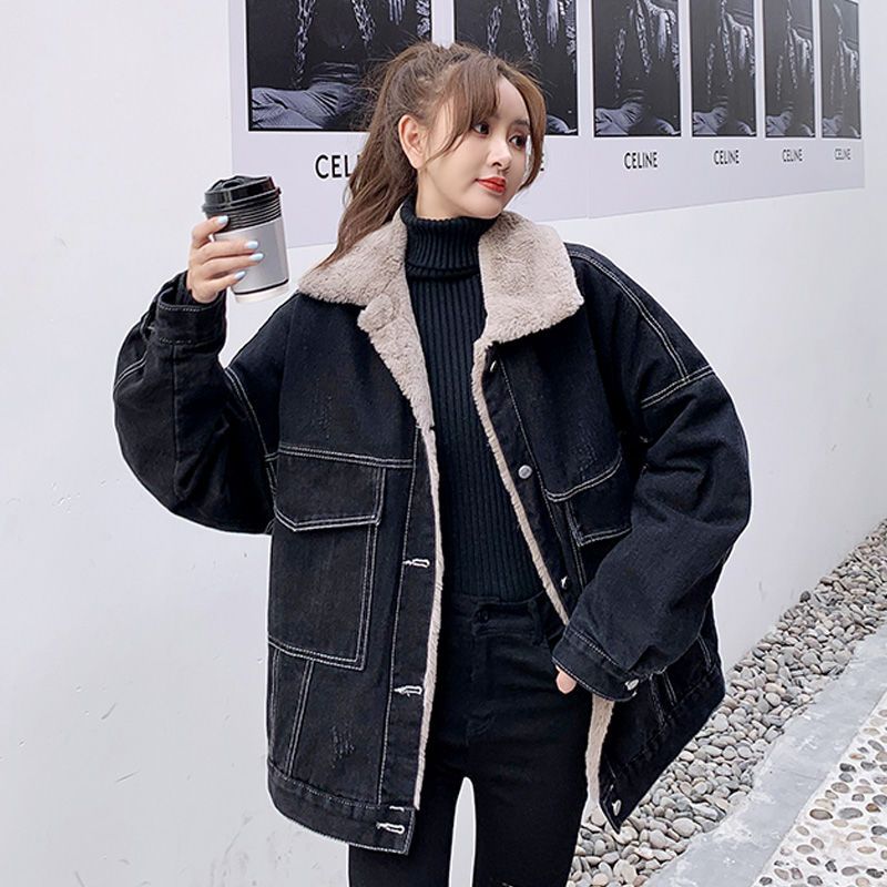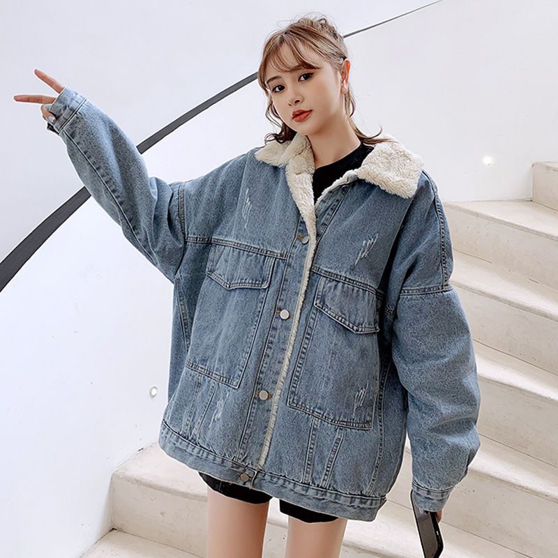 300斤大码胖mm加绒加厚牛仔外套女秋冬新款韩版休闲宽松保暖棉服