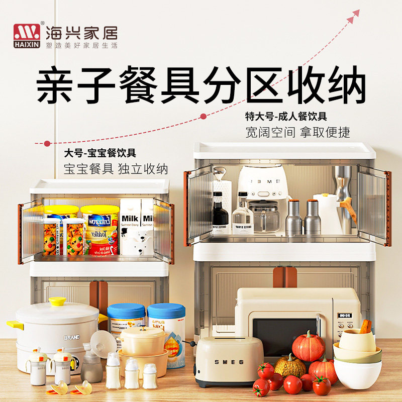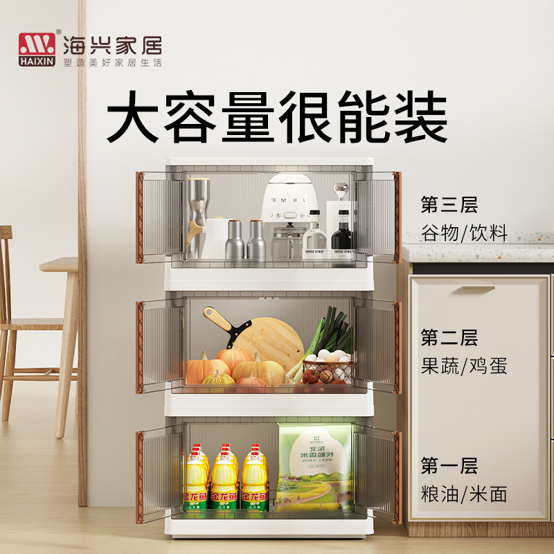 海兴厨房置物架落地多层家用多功能收纳柜碗筷碟盘橱柜锅具置物柜