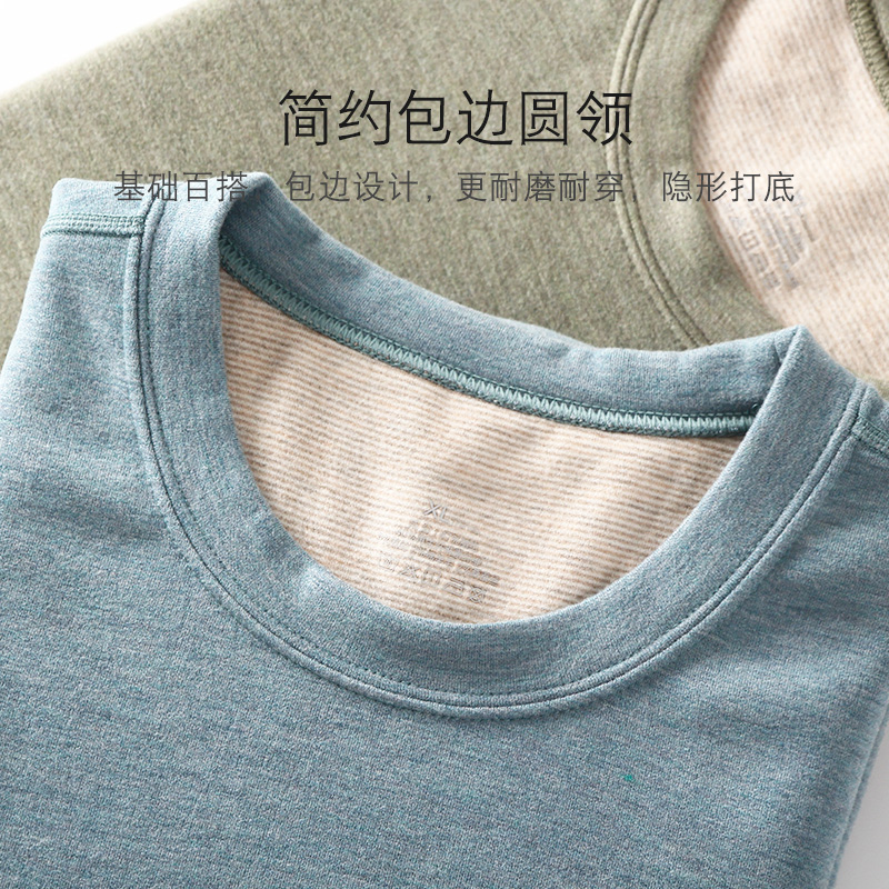 羊毛蚕丝德绒保暖上衣男士磨毛加厚打底内衣发热养肤薄绒轻暖秋衣