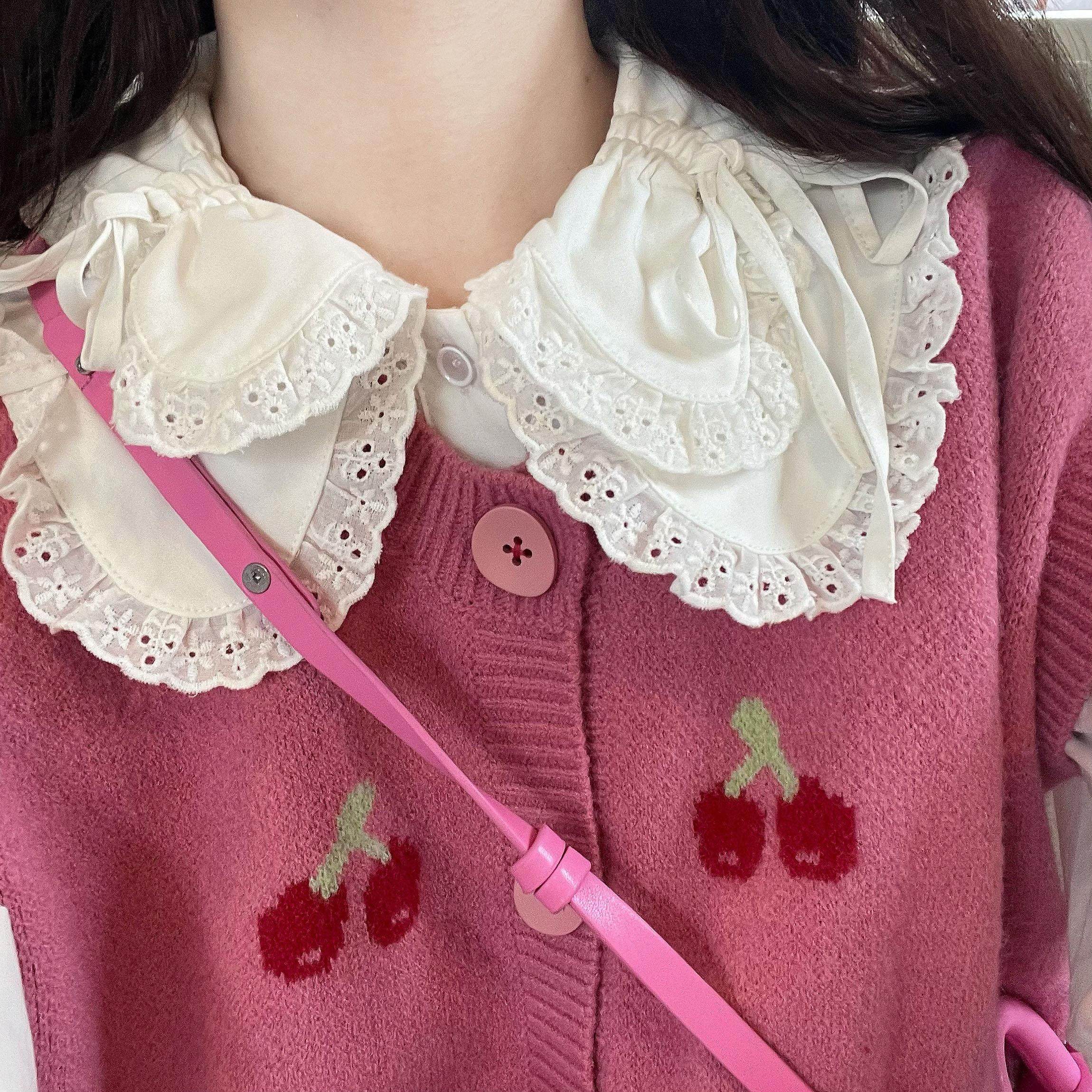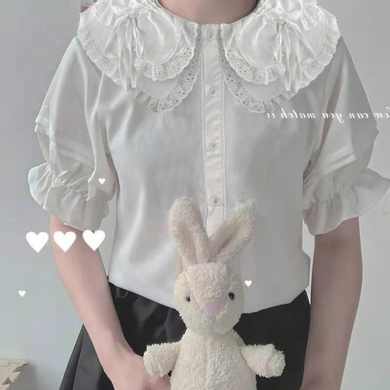 夏季日系软妹可爱花边娃娃领系带短袖lolita内搭衬衫女上衣打底衫