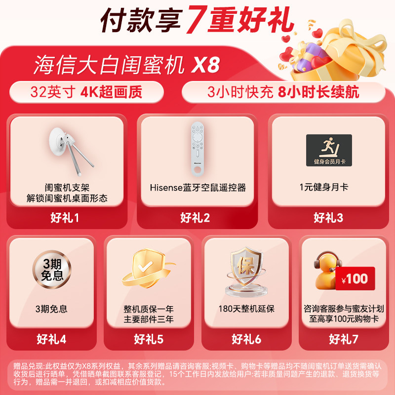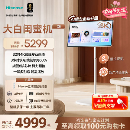 海信大白闺蜜机X8N 32英寸4K 3H快充 8GB内存 AI全新升级 智能交互 一屏多形态 娱乐观影健身 圣诞女生礼物