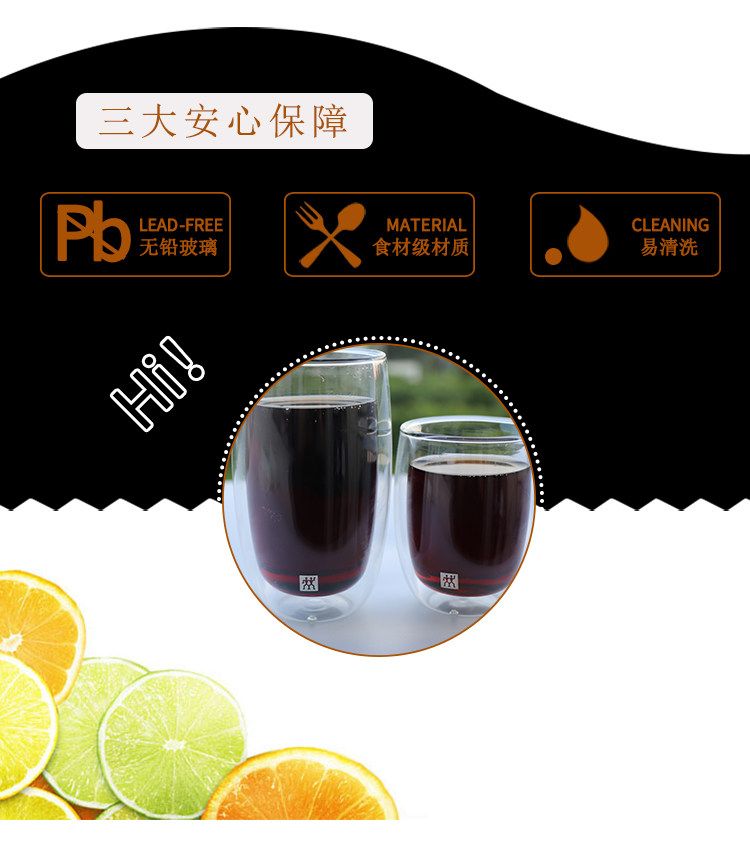 德国双立人双层玻璃杯水杯咖啡杯子高档精致拿铁杯牛奶杯耐高温