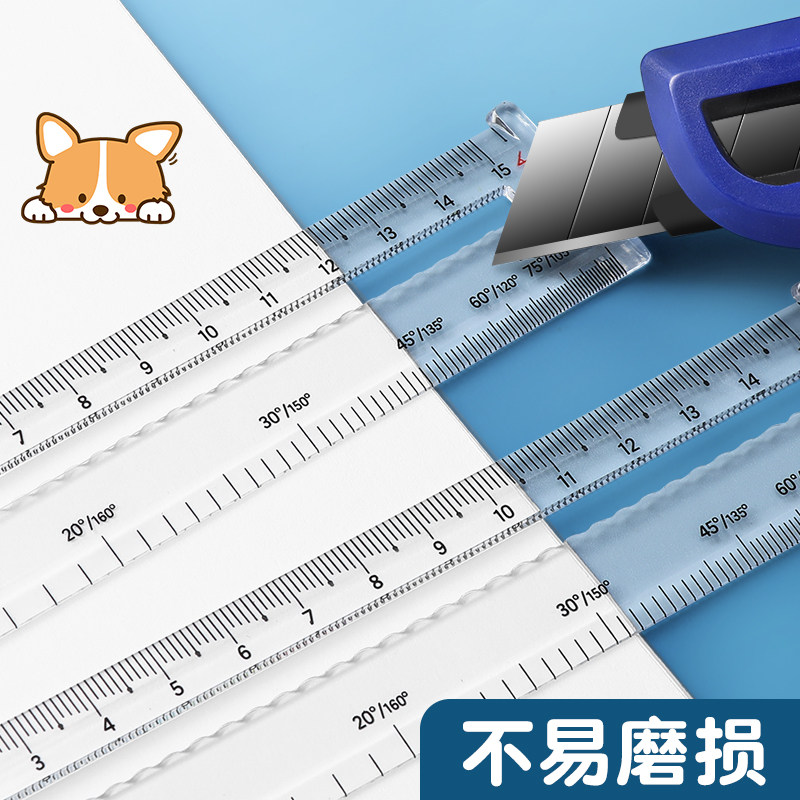 晨光优品透明直尺子带波浪线可画角度直尺15cm小学生专用多功能格尺塑料尺儿童绘图测量刻度尺一年级学生文具