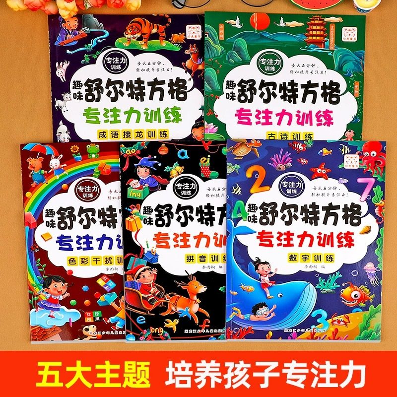 全套5册舒尔特方格专注力训练3到6岁以上提高注意力一年级二年级小学生益智书籍趣味游戏书培养孩子耐心抗干扰能力练习册教材12岁