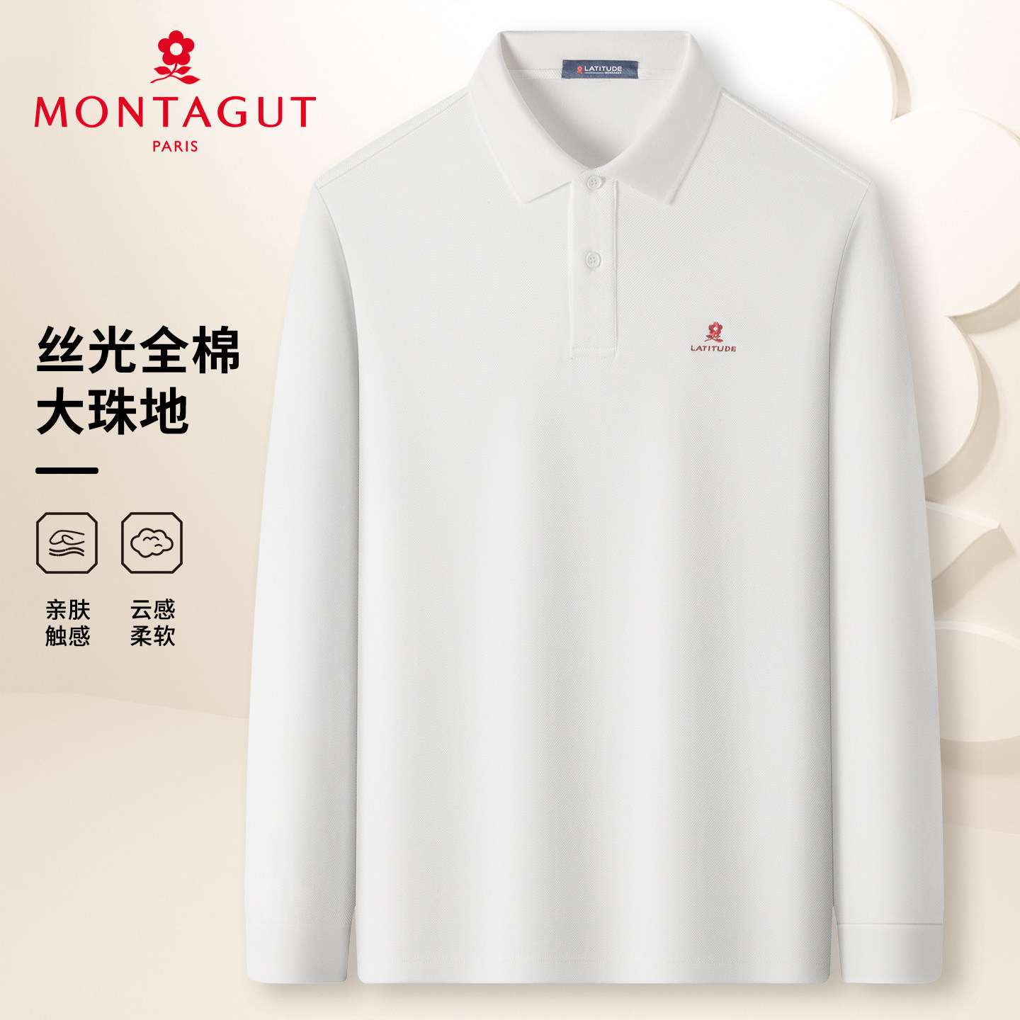 [100%丝光棉]梦特娇男士长袖Polo衫秋装翻领白色纯棉休闲T恤通勤J