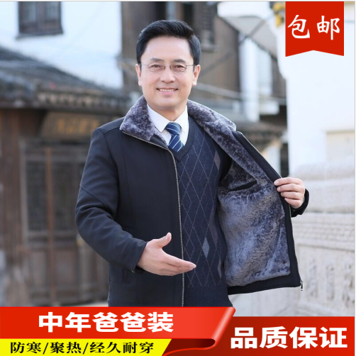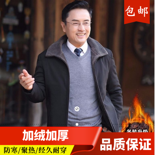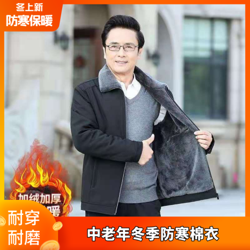 爸爸装冬季棉衣男加绒加厚中老年棉服男外套男士休闲防寒保暖棉袄