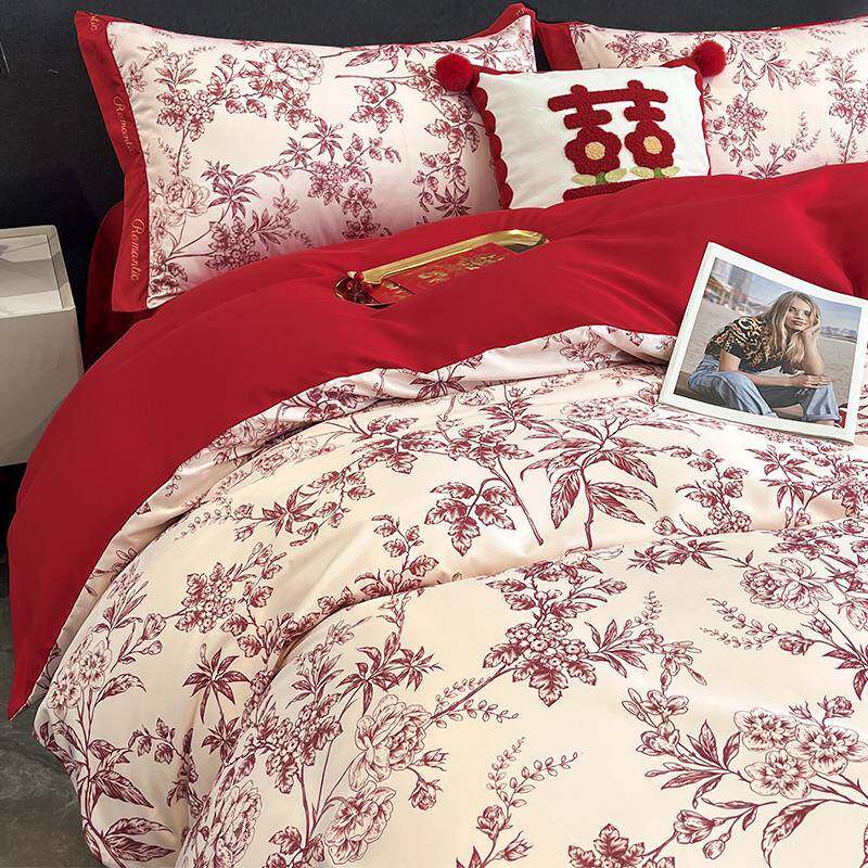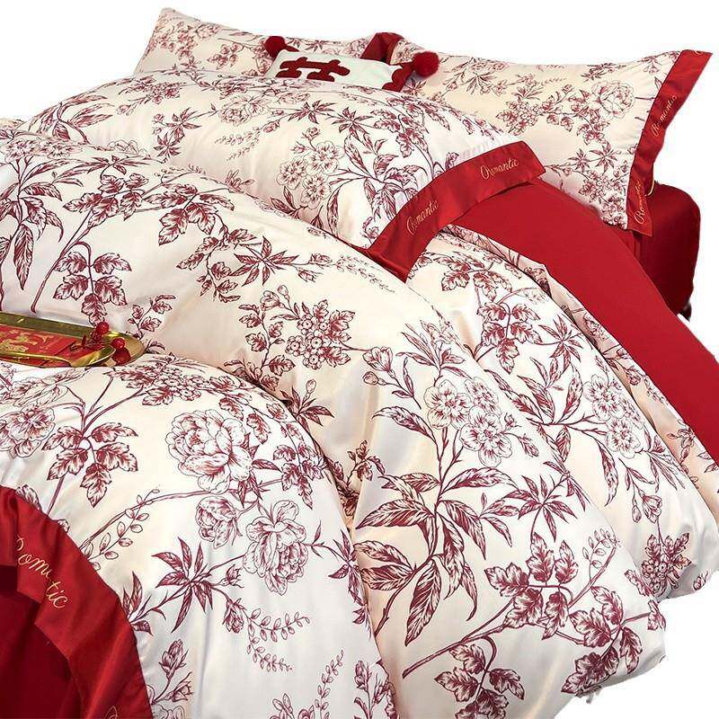 红色婚庆床上四件套喜庆婚被套新婚礼床单床笠结婚嫁轻奢高端床品
