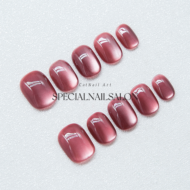 【酒红幕光】纯手工穿戴甲石榴红追光玻璃珠猫眼温柔显白美甲贴片