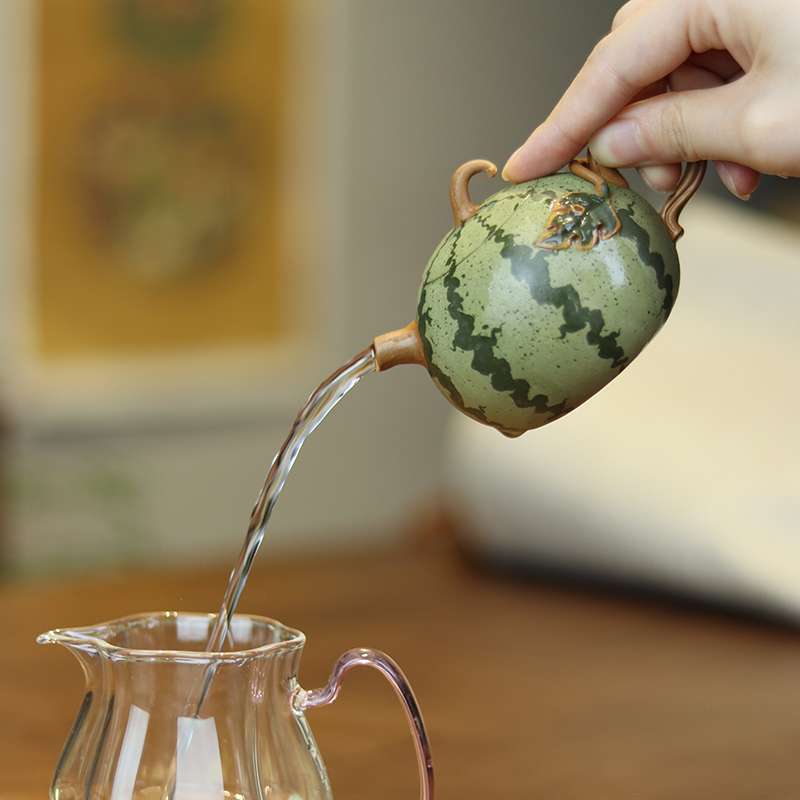 亦合紫砂西瓜壶花器茶壶手工原矿可养 仿生小品泡茶壶薄胎套装