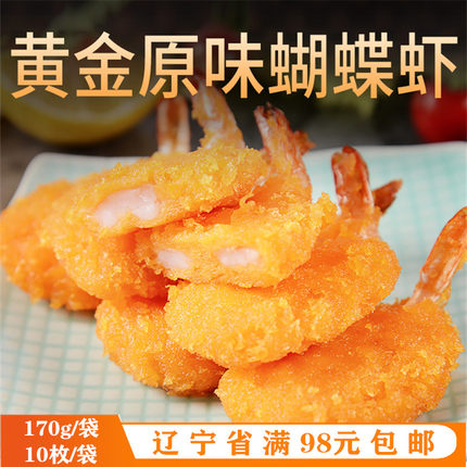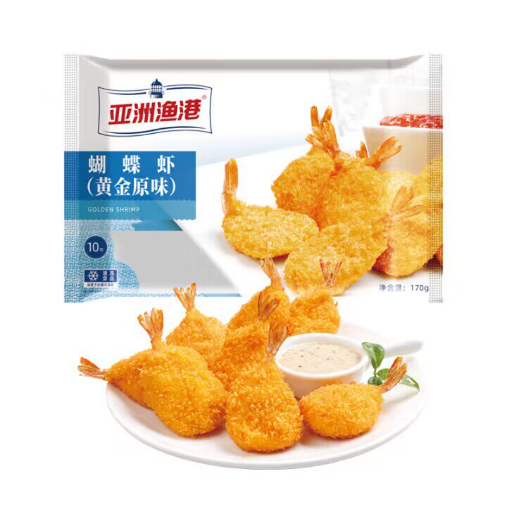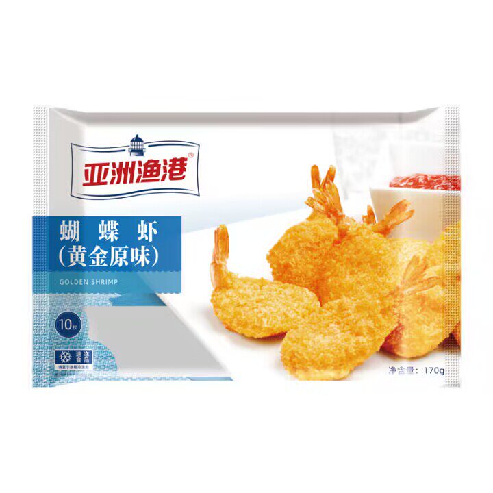 亚洲渔港黄金原味蝴蝶虾170克10只凤尾虾冷冻虾球油炸裹粉小吃