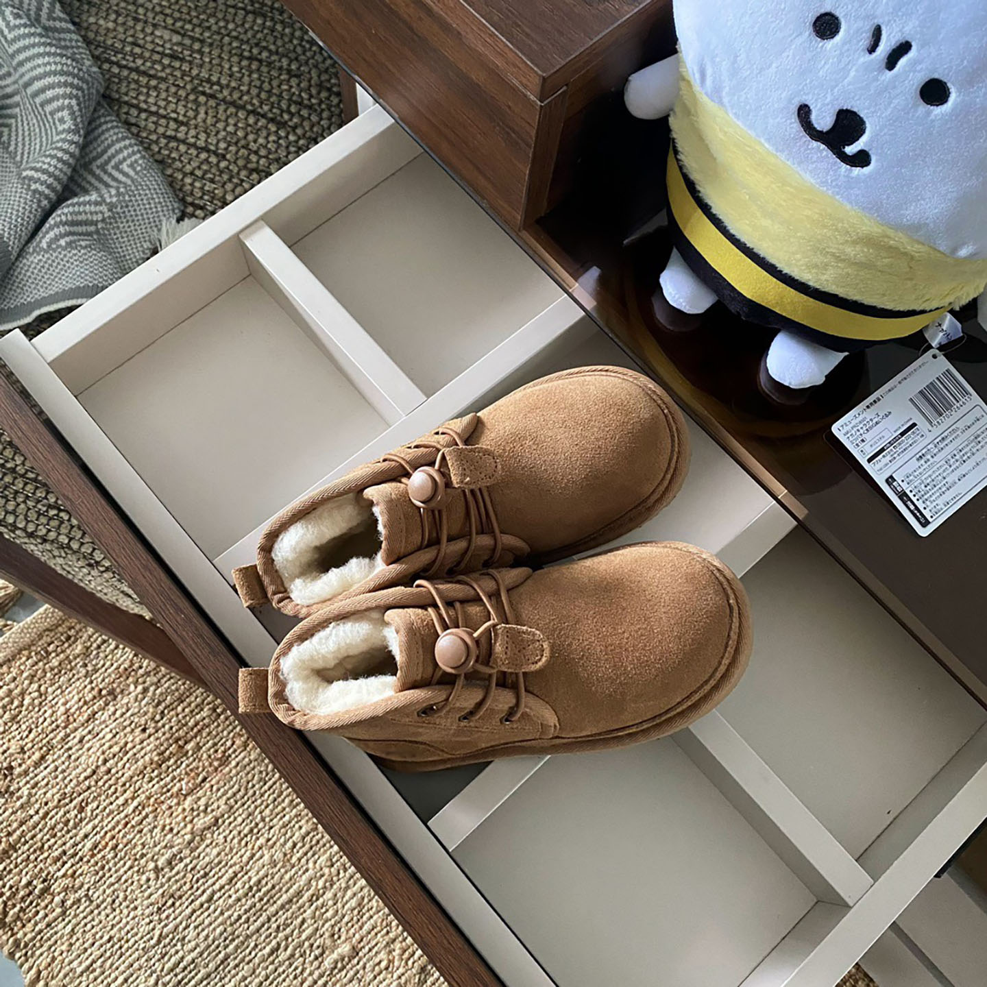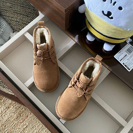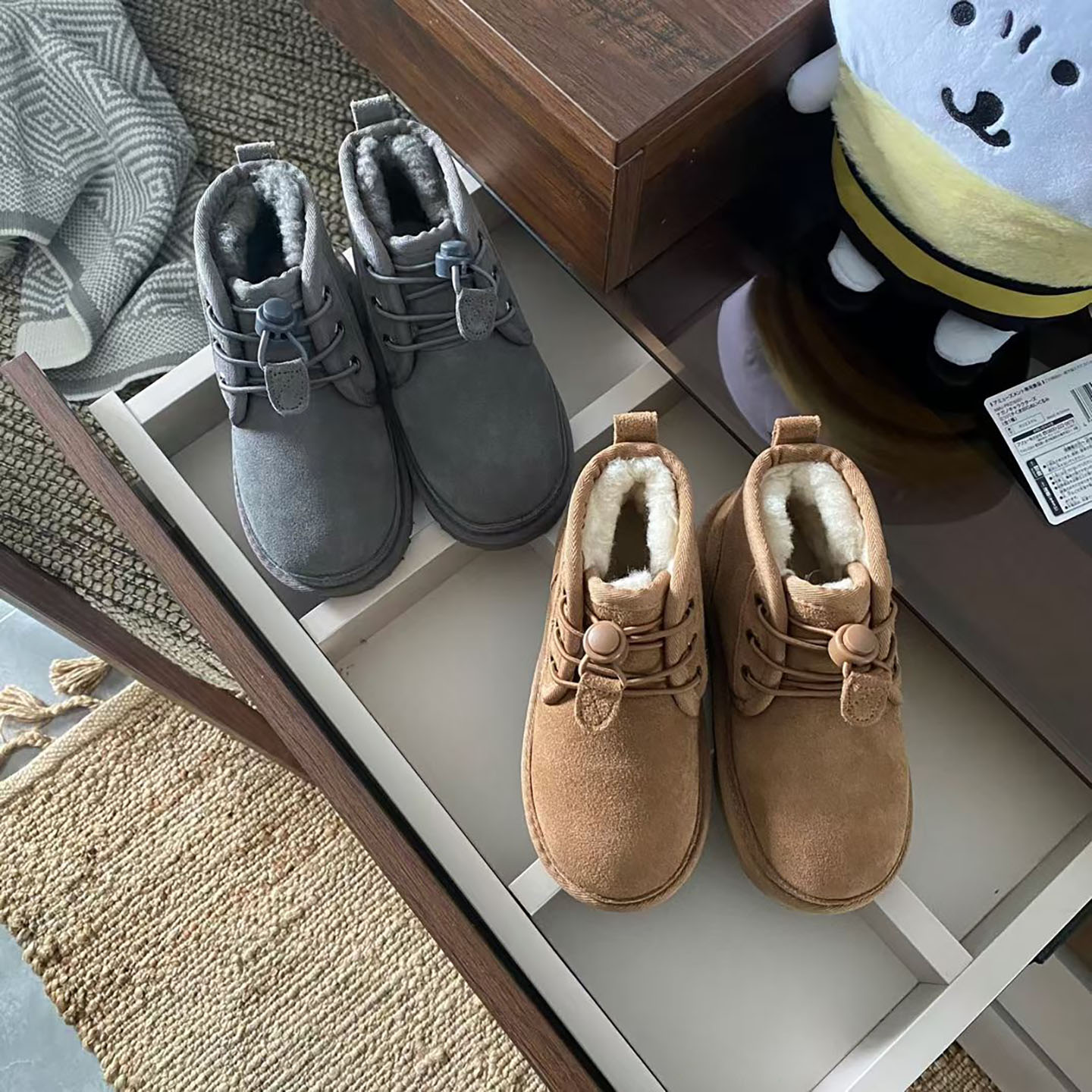 桑坡童鞋羊皮毛一体儿童雪地靴男女中大童弹力扣短筒靴亲子冬保暖