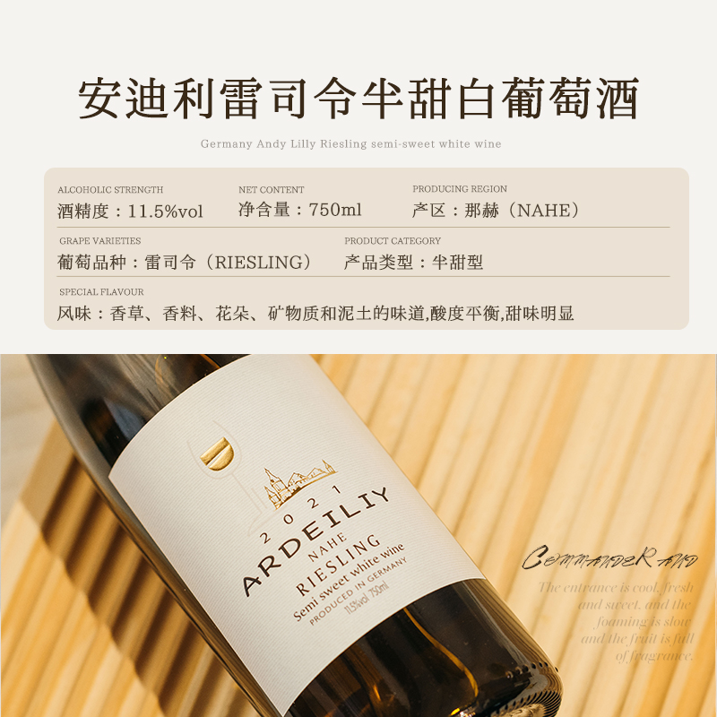 【自营】【口碑款】德国进口雷司令白葡萄酒Riesling半甜型葡萄酒