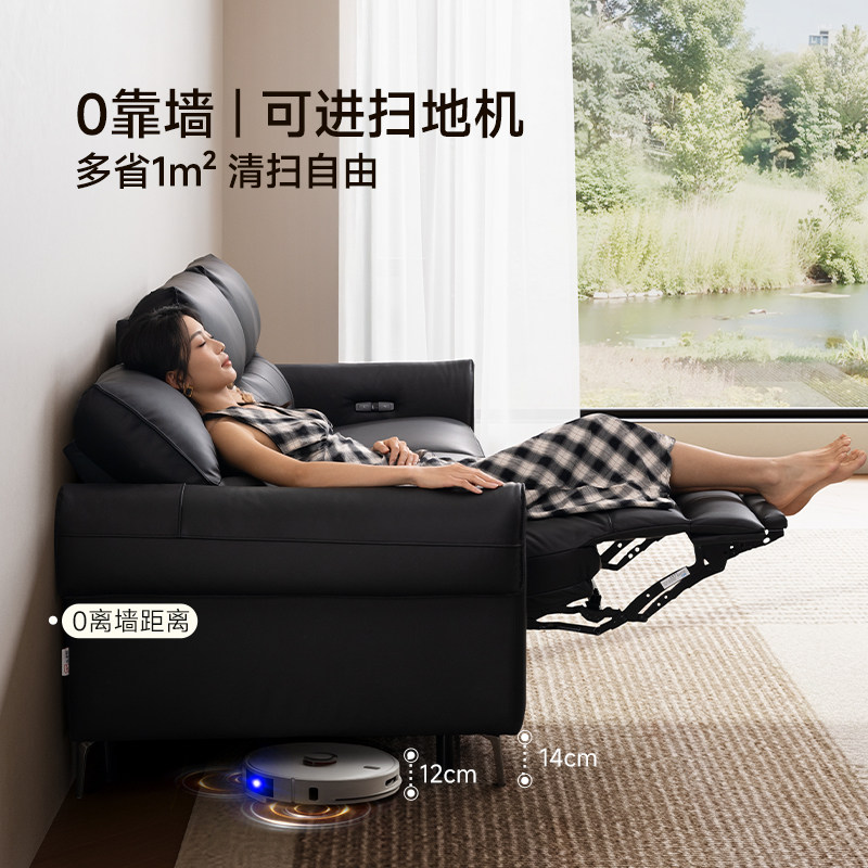 芝华仕头等舱黑色半青皮沙发电动政府补贴客厅复古风功能30260