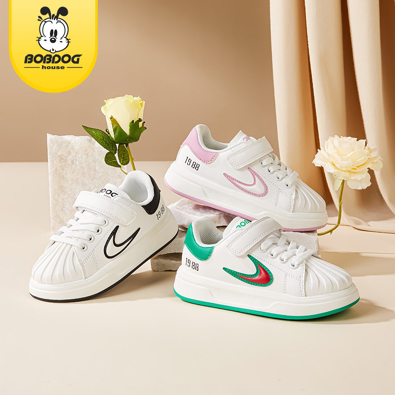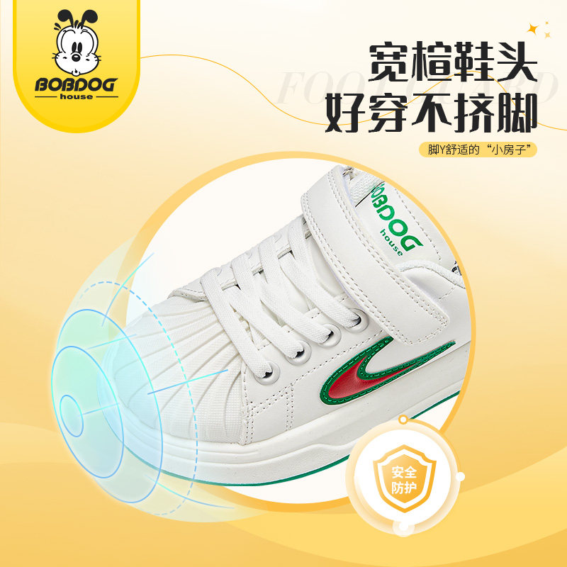 巴布豆春季新款男女童儿童休闲小白鞋中大童透气板鞋贝壳头运动鞋