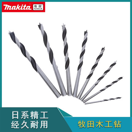 Makita牧田圆柄木工钻头三尖中心定位钻头电钻木材木头打孔木工锥