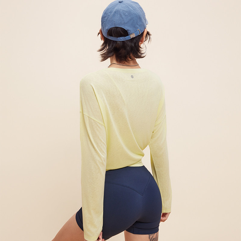 annerun天丝透气防晒罩衫女夏运动薄纱上衣宽松瑜伽服长袖健身服