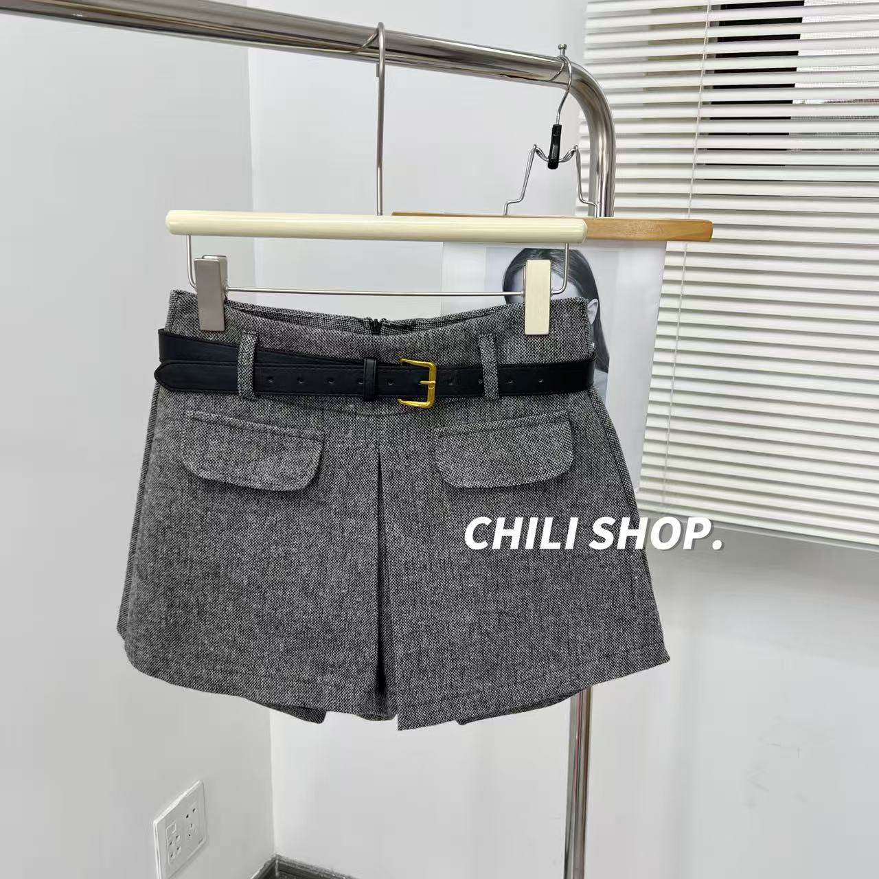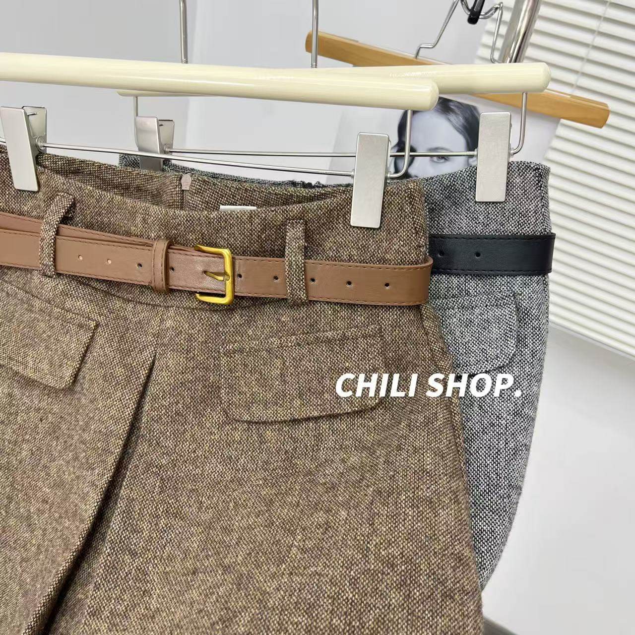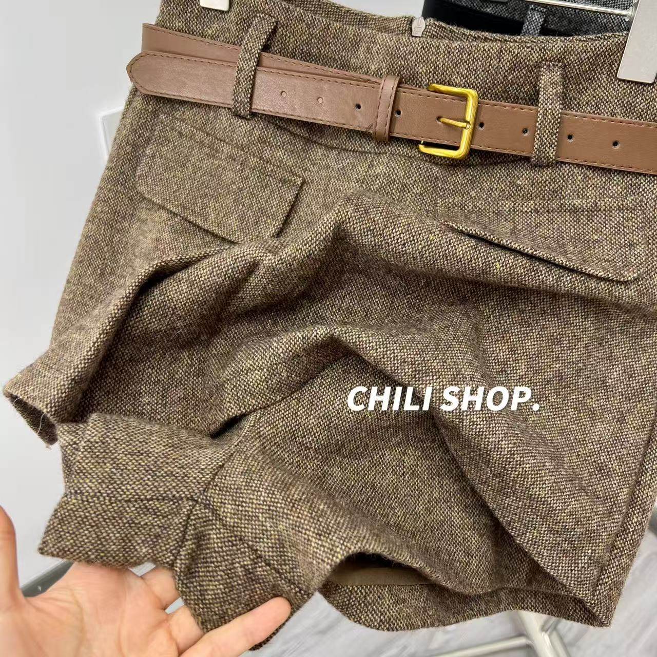 【英英Chili】粗花呢加厚韩系简约高腰秋冬百搭小香短裤 10.31