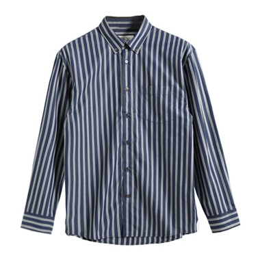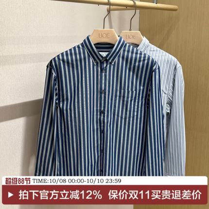 随性松驰 纯棉炭素磨毛工艺微阔男士条纹长袖休闲衬衫宽松衬衣