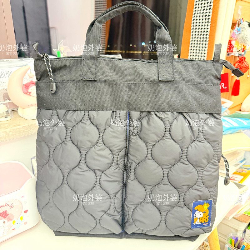 日系史努比大容量双肩包通勤包绗缝夹棉工装风背包轻便百搭登山包