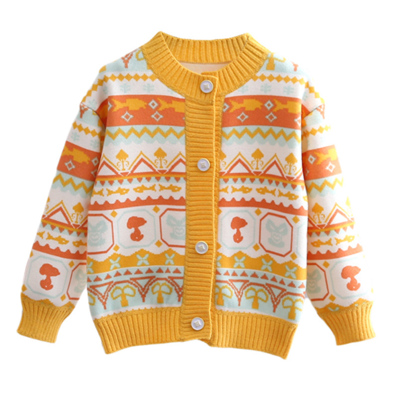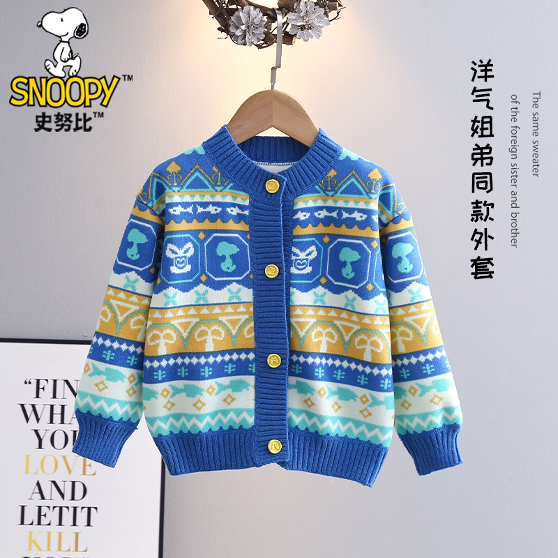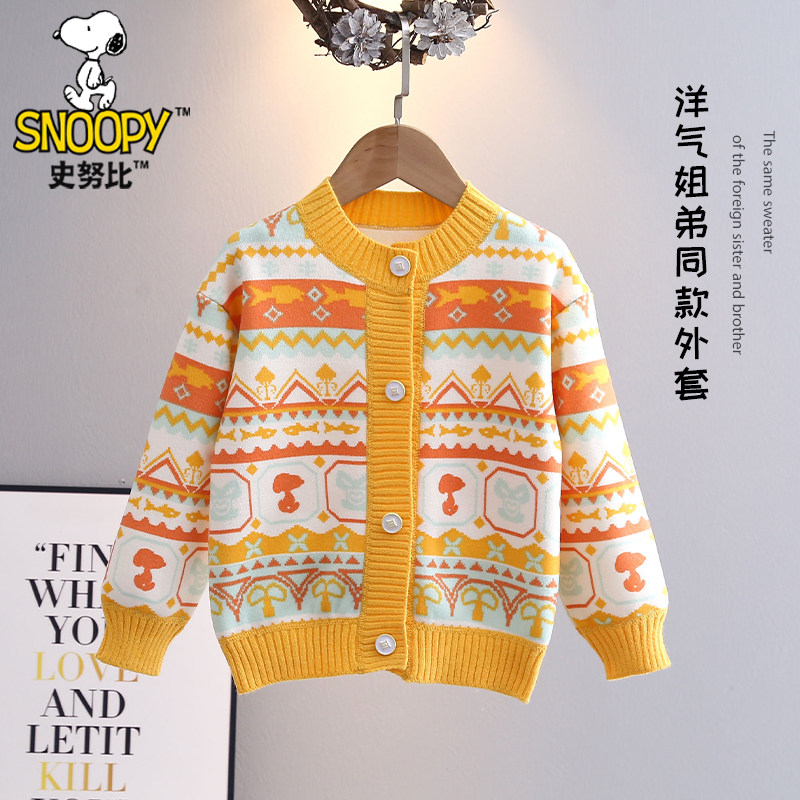 史努比男女童秋冬针织开衫上衣小女孩新款时尚毛衣儿童一体绒外套