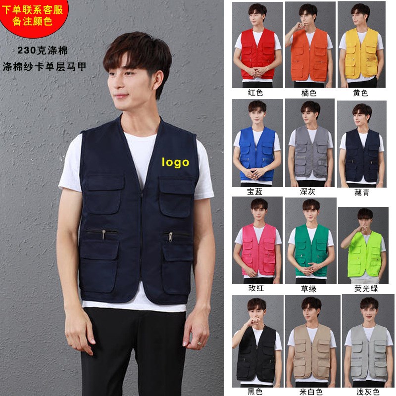 多口袋拼色马甲工作服定制志愿者广告活动宣传背心义工装印字logo