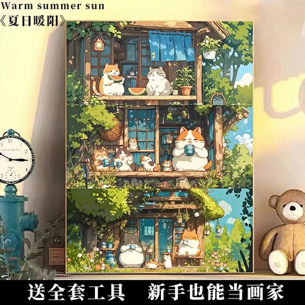 手绘油画diy填充手工数字油画填色无聊解闷油彩客厅装饰画高级感