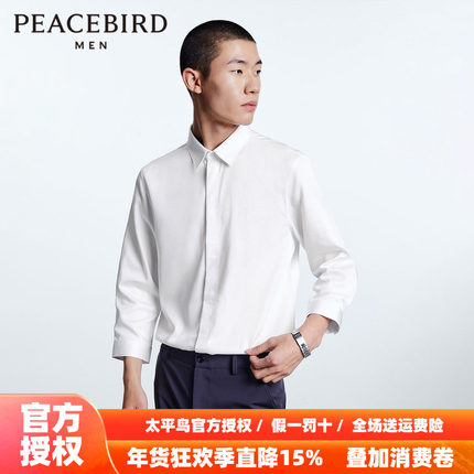 【商场同款】太平鸟男装韩版时尚休闲七分袖白色衬衫男B1CBD2254