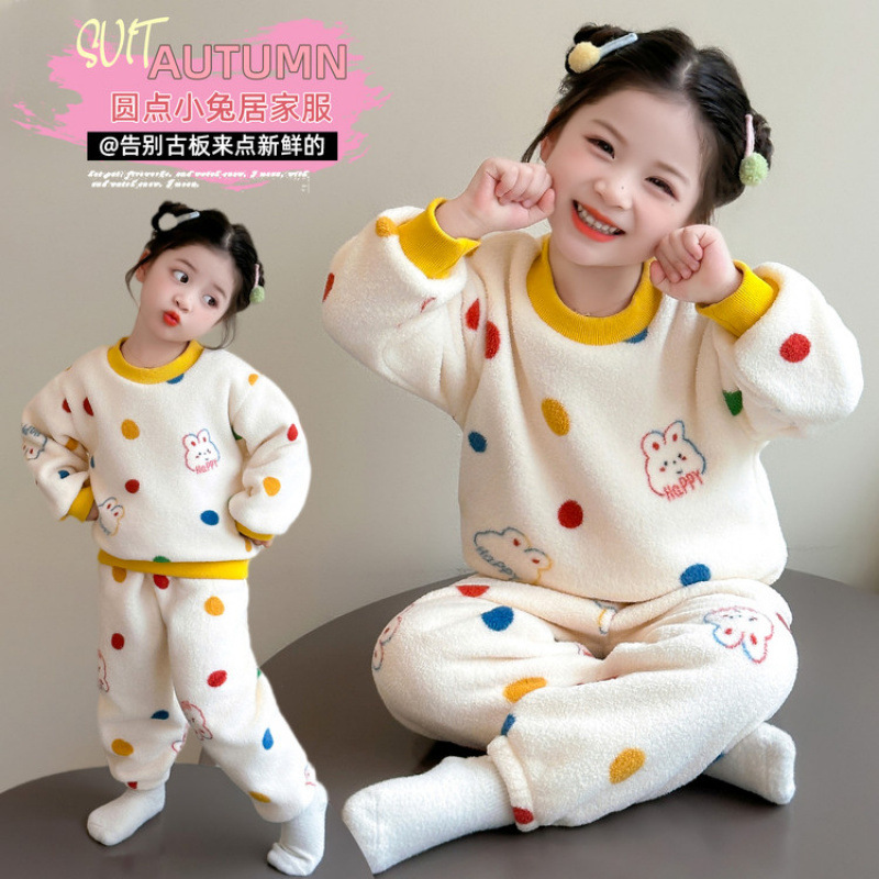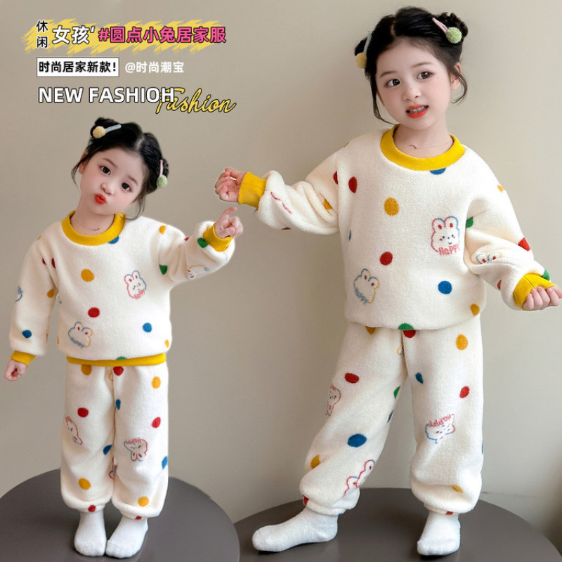 儿童珊瑚绒睡衣女童秋冬季加绒加厚女孩公主宝宝法兰绒家居服