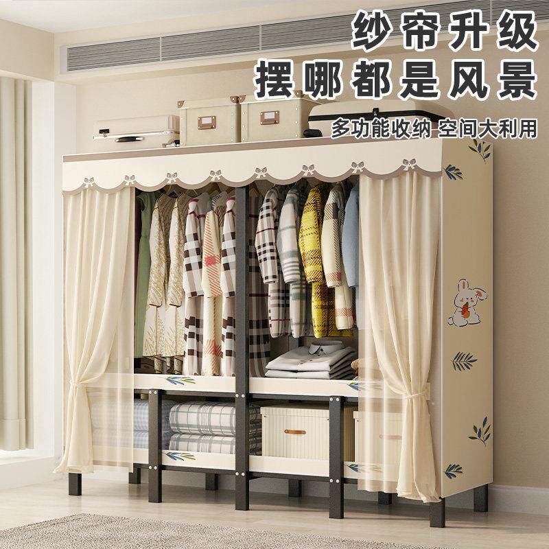 折叠免安装衣柜家用卧室加粗加厚全钢架简易布衣柜出租房结实耐用