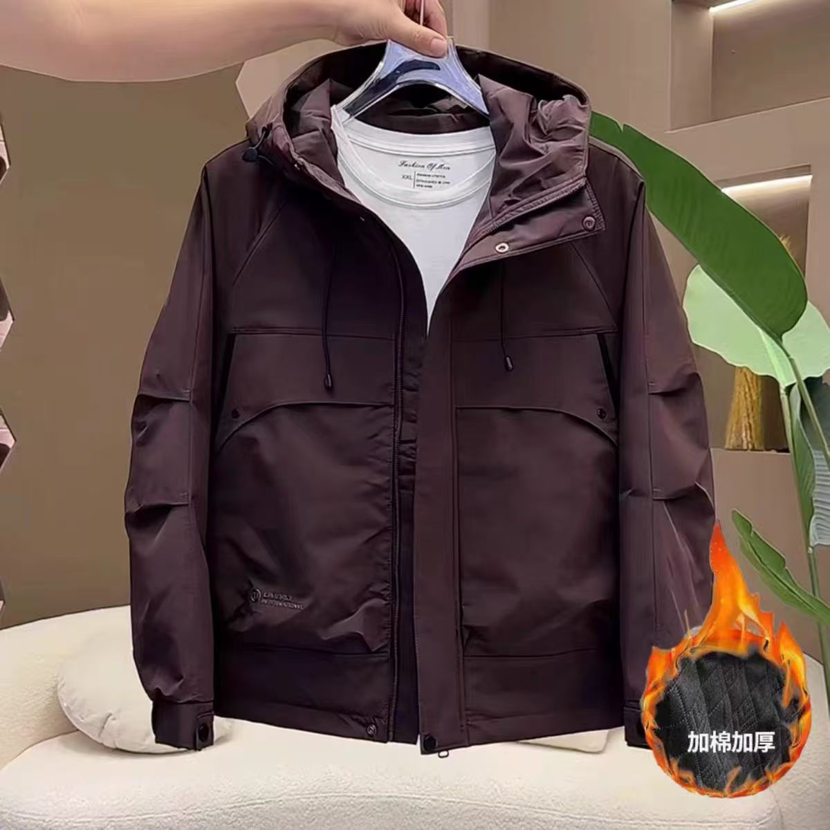 厂家直销男士连帽宽松夹棉外套防风加厚二棉冲锋衣男工装保暖冬季