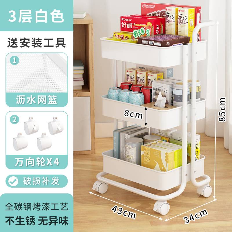 移动置物架厨房蔬菜水果篮子落地多层筐储物小推车床头收纳圣之圣