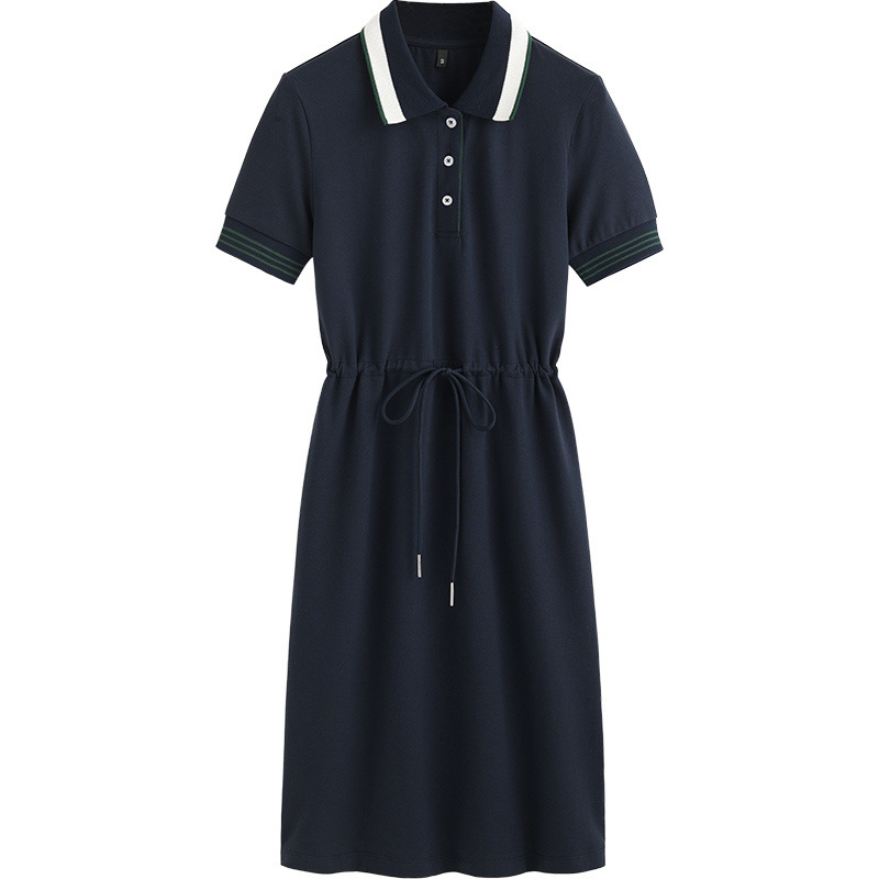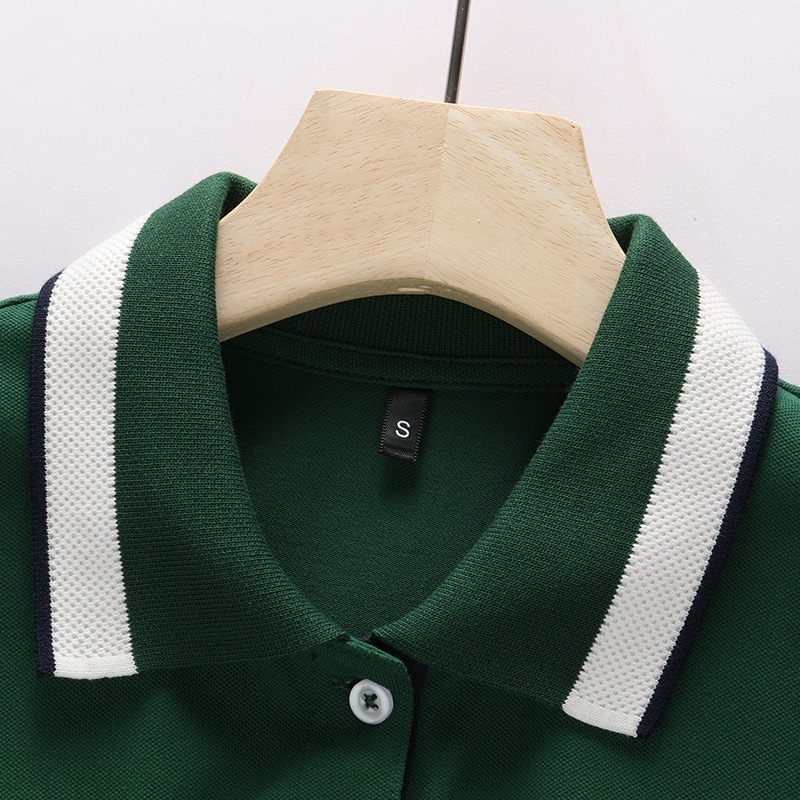 2024夏新款套头腰带短袖中长款翻领T恤女气质棉质舒适打底衫6929