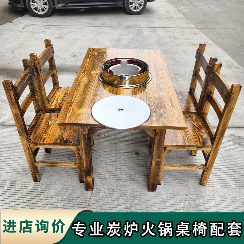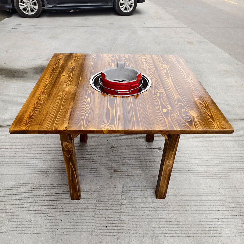 炭炉鸡煲火锅桌子实木桌牛杂煲地摊夜市烧烤木桌子商用经济四方桌