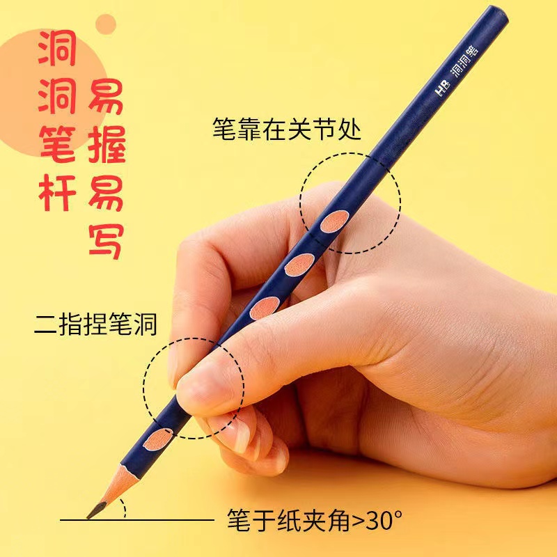 承耀正姿洞洞铅笔小学生专用一二年级安全2B铅笔三角杆矫正握姿幼儿园初学者HB练字考试专用笔涂色涂卡铅笔