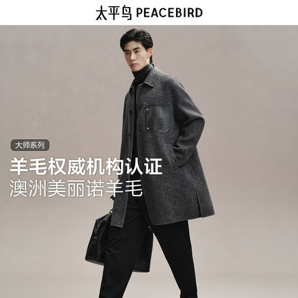【斜纹羊毛】太平鸟男装中长款毛呢大衣男冬季新款宽松外套