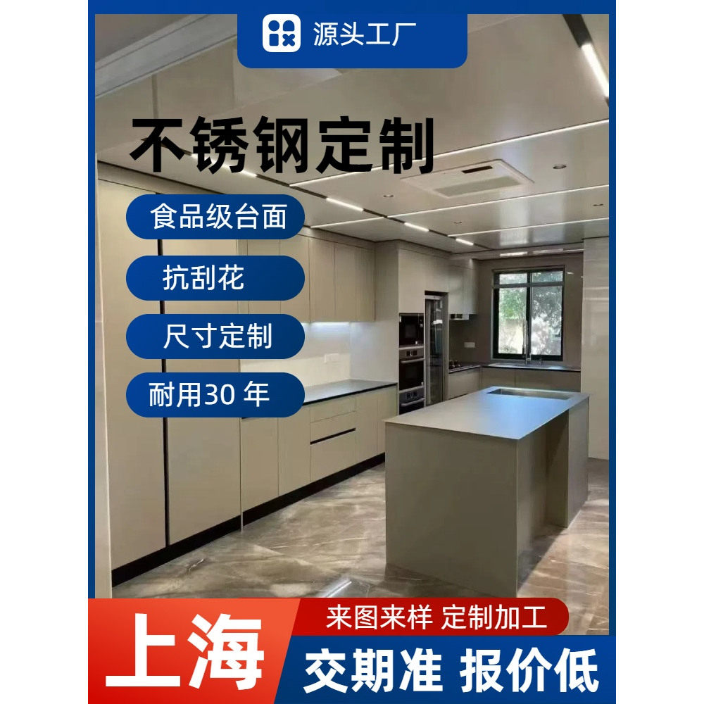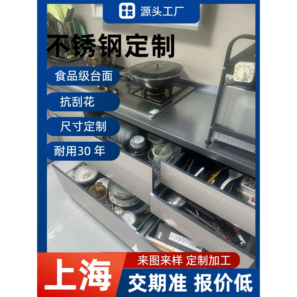 304整体不锈钢定制厨房橱柜家用小户型简易灶台一体储物收纳碗柜