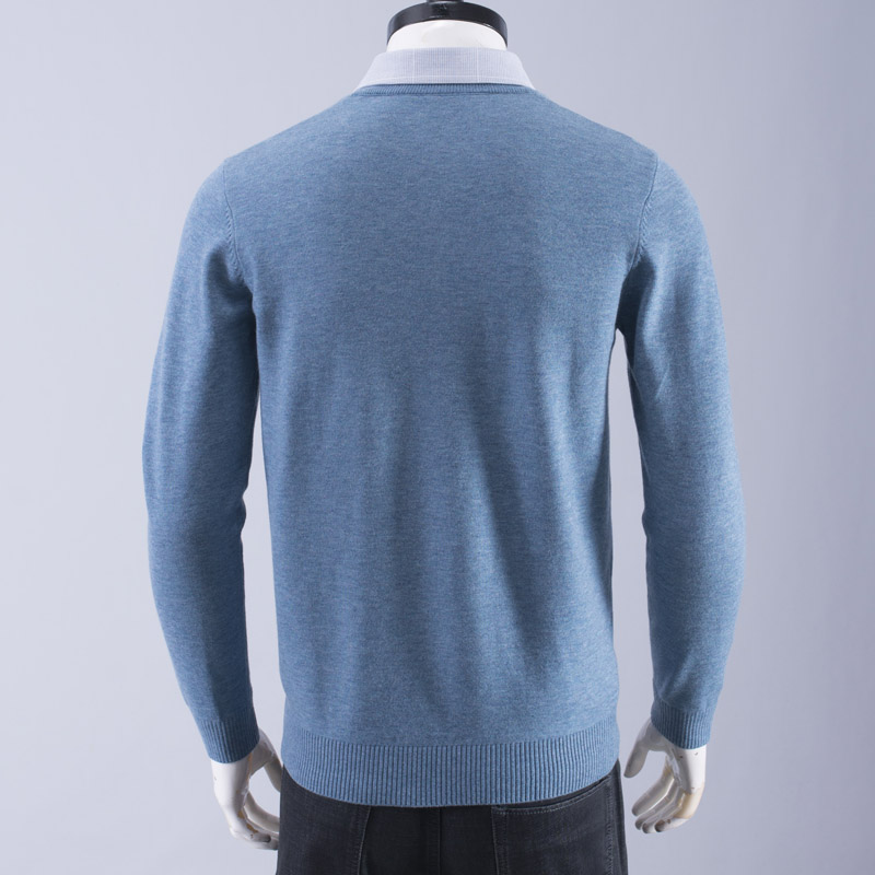 2023年新款男士春秋季假两件针织衫中青年打底男装线衫衬衫领毛衣
