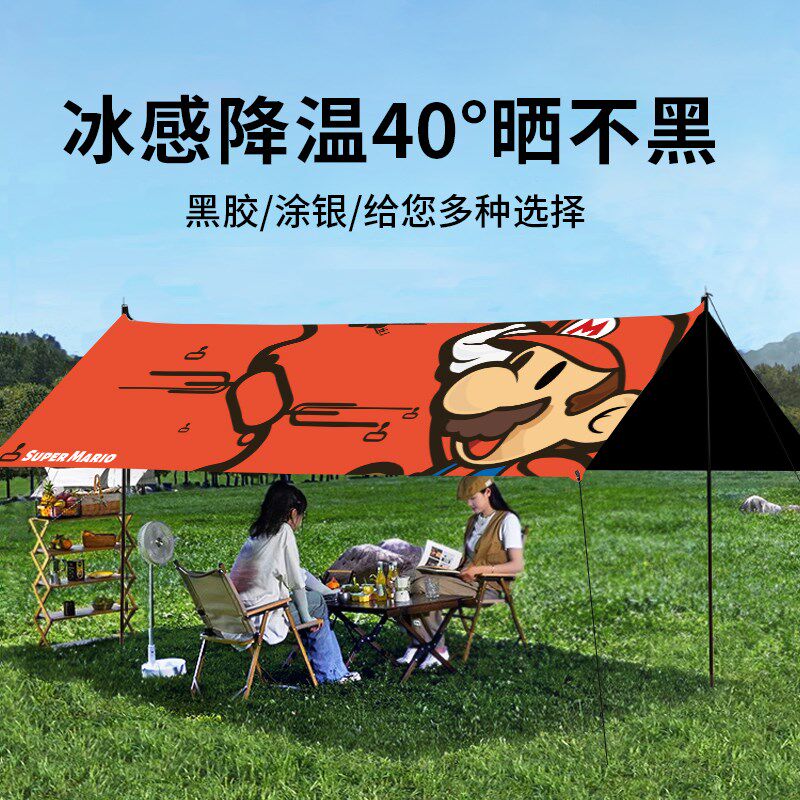 印花户外天幕帐篷露营便携式黑胶防晒蝶形六角野营涂银防风遮阳棚