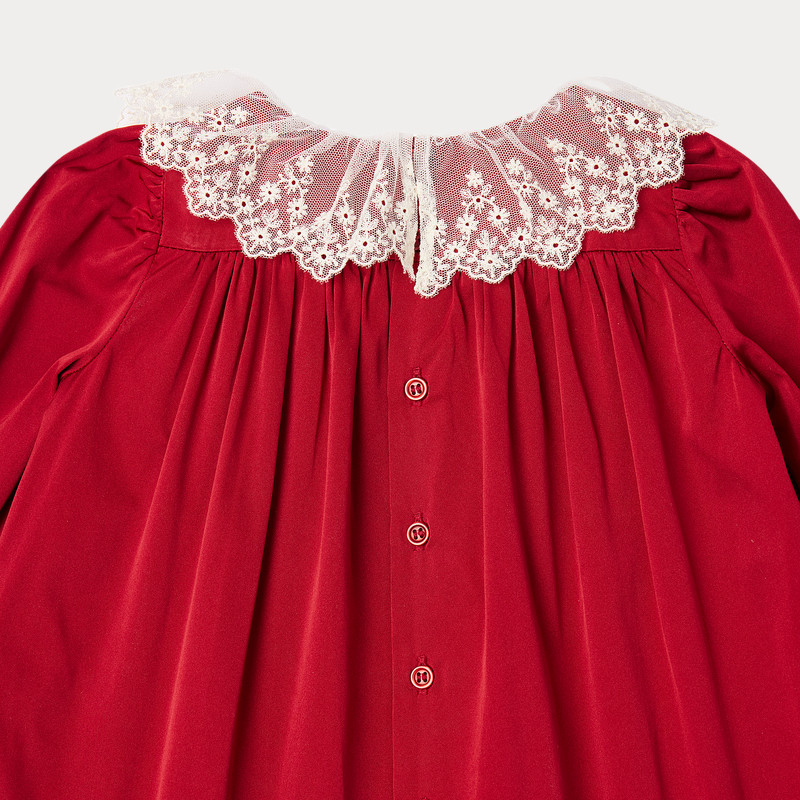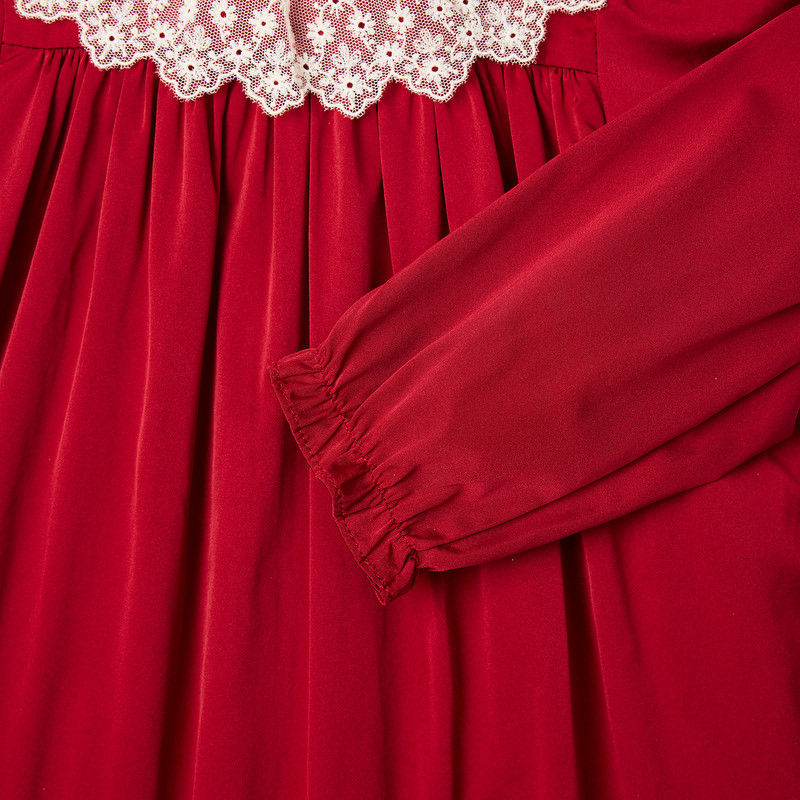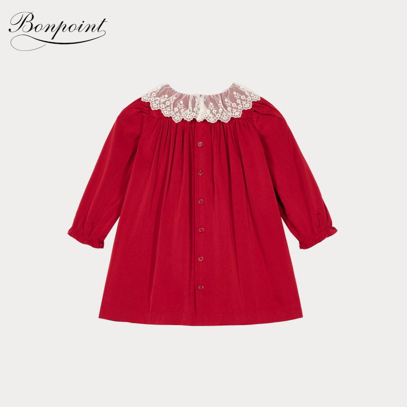 【节日礼物】2025秋冬女小童纯色蕾丝领长袖连身裙Bonpoint童装