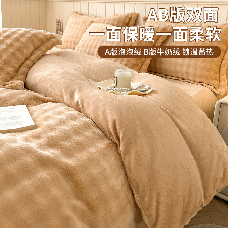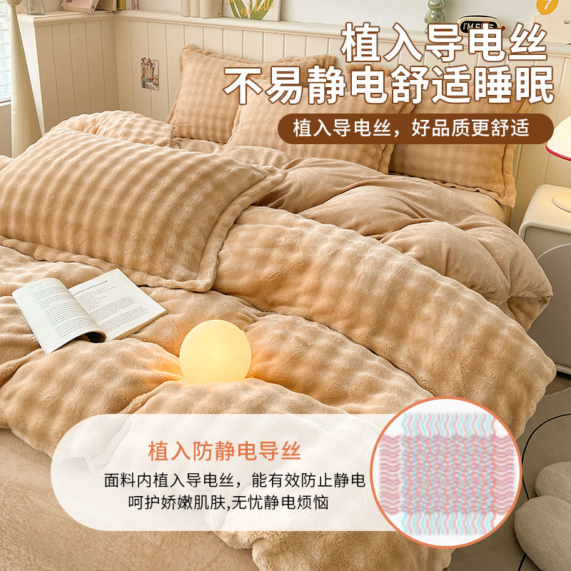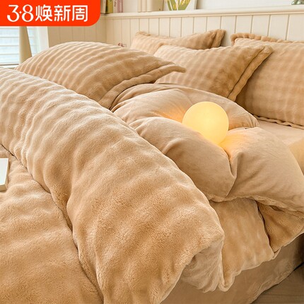 冬季三件套兔毛绒四件套加厚珊瑚绒被套加绒床单人学生双面牛奶绒