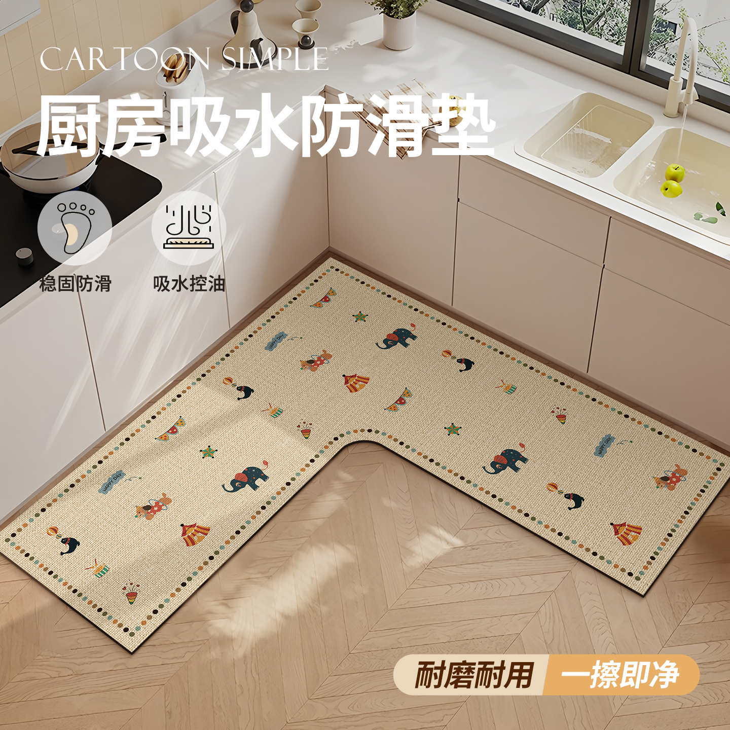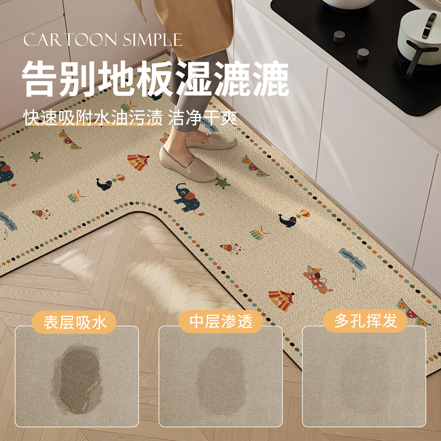 L型厨房地垫专用硅藻泥垫子吸水垫脚垫防油防滑可擦免洗地毯耐脏