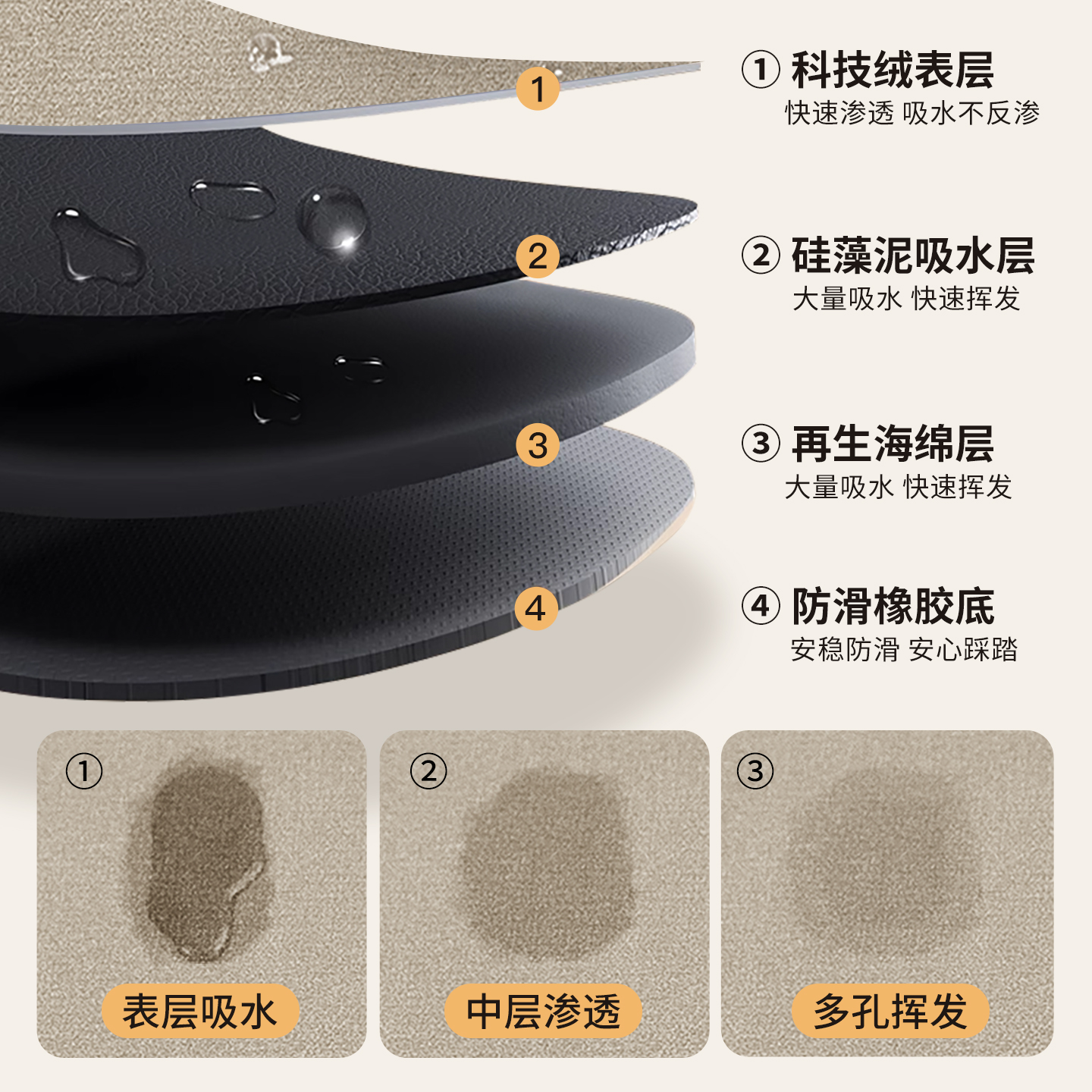 厨房地垫L形硅藻泥吸水防滑脚垫