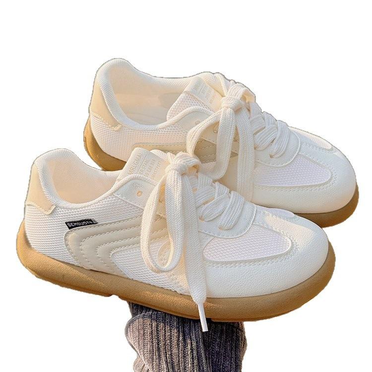 夏季网面透气小白鞋女鞋2025新款百搭小众运动板鞋子厚底潮