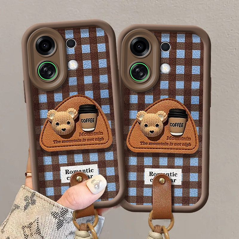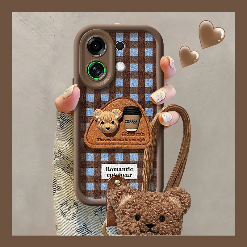 适用OPPOK13Turbo手机壳K12S咖啡熊支架K11X创意挂绳K10可爱卡通OPPO女款Find X8全包硅胶防摔X7ultra保护套