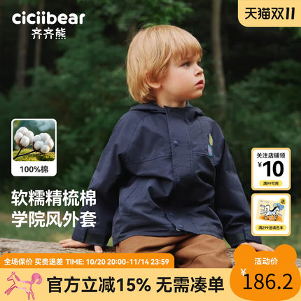 [100%棉]齐齐熊宝宝风衣外套男女童学院风春秋款2025新款儿童上衣