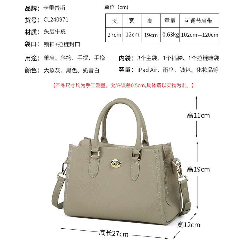 卡里普斯头层牛皮新品手提包