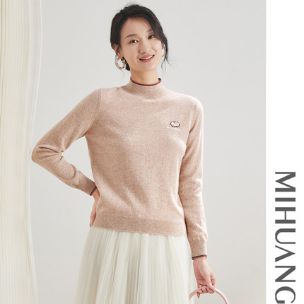 商场同款米皇秋冬新品半高领绣花100%纯山羊绒女衫休闲打底毛衫