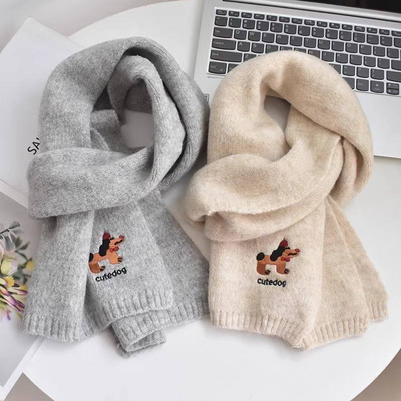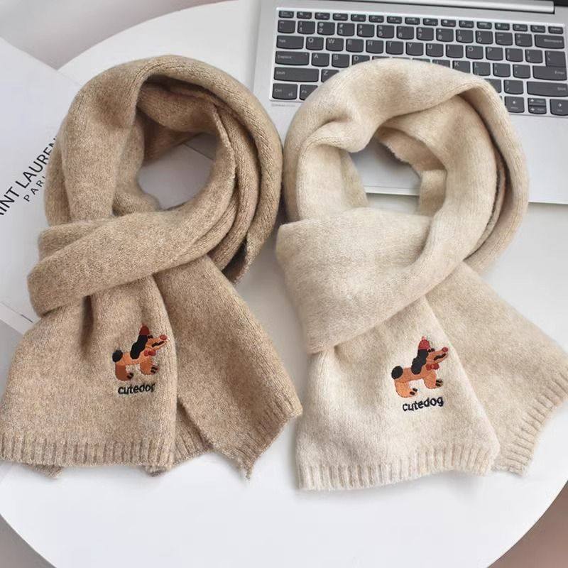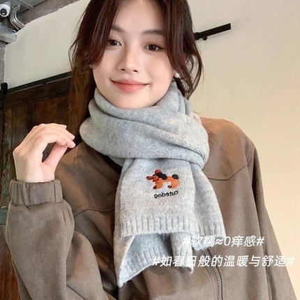 韩系氛围感小狗刺绣含羊绒围巾